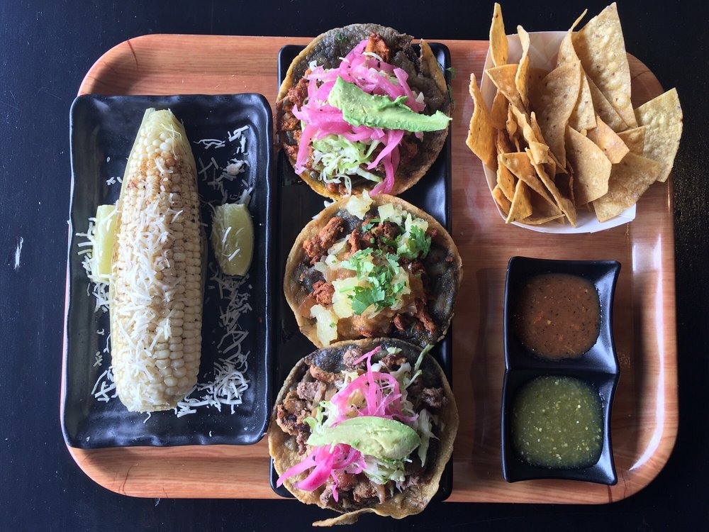 LosMayas Published November 17, 2017 at 1000 × 750 in A Cuisine Comes Full Circle: California Mexican Steps Up ← Previous Next → Eloté, panuchos and chips and salsa at Los Mayas. | Photo: Justin P./Yelp