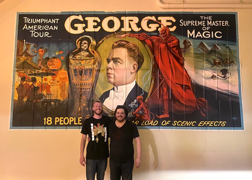 Georgentheguys Published May 17, 2023 at 807 × 577 in Conquering Setbacks, Petite Lil’s Lights Up Legendary ‘Washbag’ Space ← Previous Andrew England (L) with Nick Floulis in front of the enormous vintage poster which adorns the south wall of Petite Lil’s. | Photo Courtesy of Nick Floulis